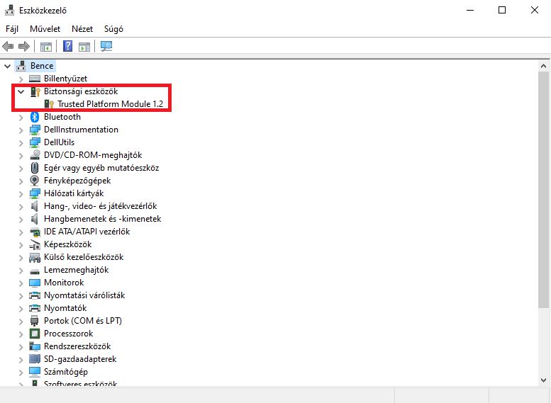 Mivel a TPM modul (annak is legalább az 1.2-es verziója) elengedhetetlen a BitLocker működéséhez, így ahhoz, hogy a gépünk egyáltalán kompatibilis legyen, először is annak meglétéről kell meggyőződni. Ehhez nyissuk meg az Eszközkezelőt (jobb klikk a Start menüre), keressük meg és bontsuk ki a Biztonsági eszközök ágat, ahol a Platformmegbízhatósági modul alpont mögött már látni is fogjuk a verziószámot. Amennyiben nem találunk TPM eszközt az említett helyen, úgy biztosak lehetünk, hogy nem fog beaktiválódni.