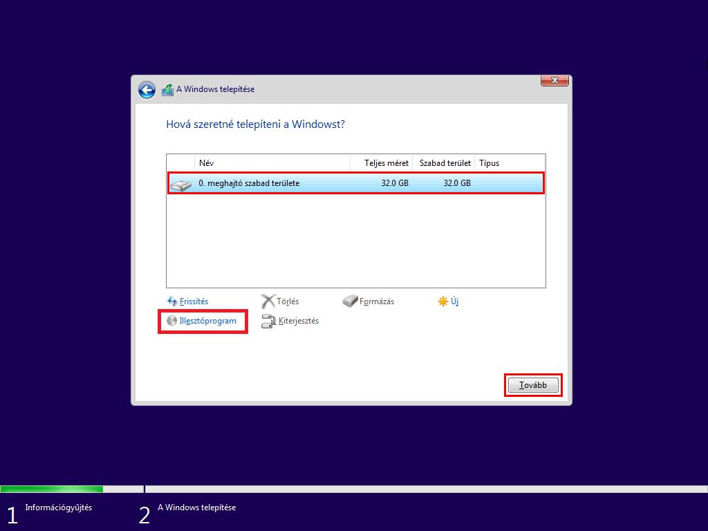 - Amennyiben jól csináltuk, úgy immáron a “Hová szeretné telepíteni a Windowst?” ablakban látnunk kell az eddig nem látott NVMe SSD-t is és meg is kezdhetjük a telepítést.