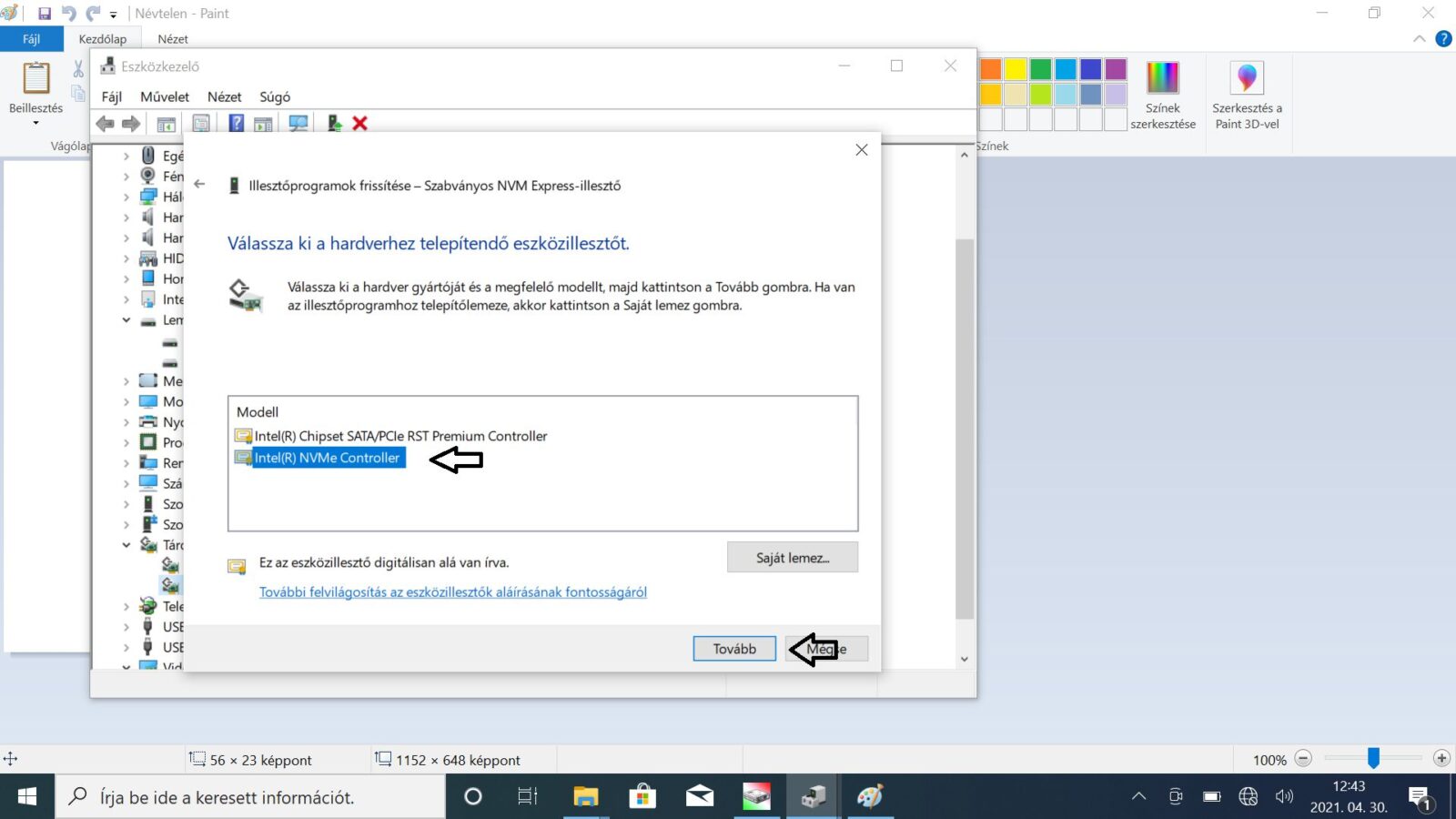 Utolsó lépésként válasszuk ki az NVMe Controllert és kattintsunk a továbbra.