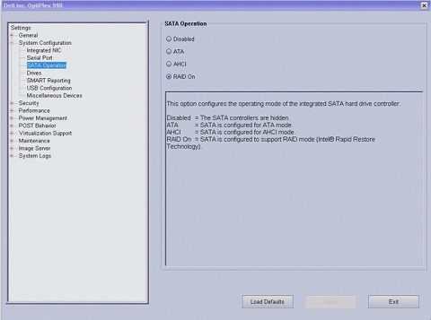 V: Új gépek esetén szinte biztos, hogy az AHCI az alapértelmezett beállítás, ez alól egyedül a Dell-ek képeznek kivételt, ott ugyanis még mindig a RAID a jellemző. Ennek ellenőrzésére, esetleg egyikről a másikra való átkapcsolására a BIOS-on belül, a SATA mód beállításánál (System configuration / SATA Mode) van lehetőségünk. Állítsuk át, mentsük el a beállítást, indítsuk újra a gépet és újraindítást követően az adott beállítás már érvénybe is lép.