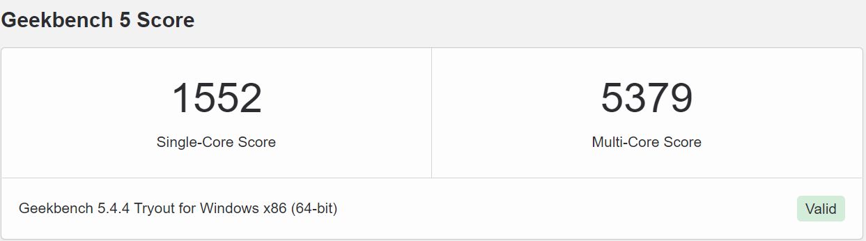 Az i7-1165G7 teljesítménye a Geekbench 5 alatt