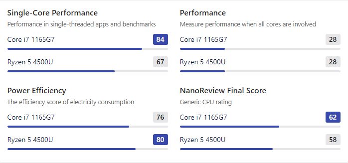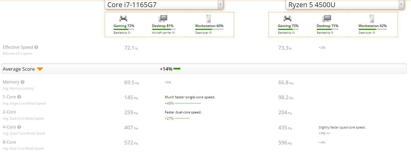 i7-1165G7 vs Ryzen 5 4500U