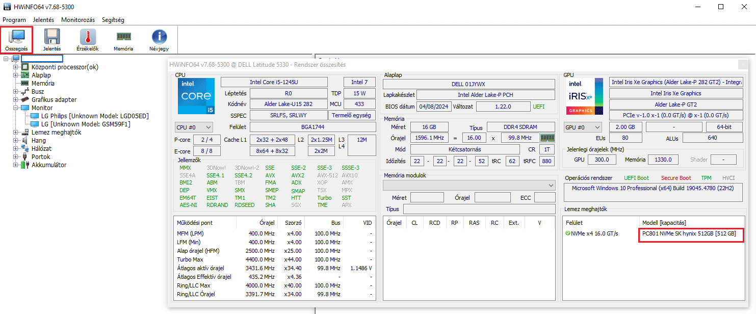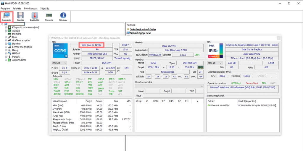A laptop tulajdonságainak kiolvasásához legegyszerűbb megoldásként a HWiNFO nevű program használatát javasoljuk. Részletesen leírjuk, hogy a programon belül hol találhatók meg a szükséges információk, és hogyan tudja azokat kimásolni az „eredmény másolása” opcióval.
